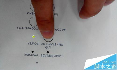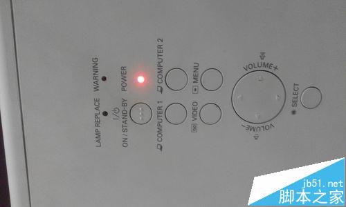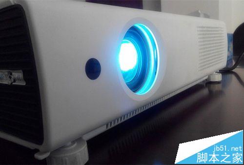 4、按下電源鍵,設備啟動,鏡頭亮起,投影出現。