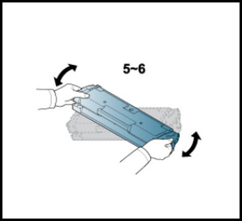 當墨粉盒即將達到使用壽命時:打印出現(xiàn)白色條紋、字跡變淡、兩側(cè)密度不同。面板上墨粉 LED 閃爍橙色,通知墨粉快要用完。出現(xiàn)上述情況后,您可以通過搖勻墨粉盒內(nèi)剩余的墨粉,可暫時改善打印質(zhì)量,操作方法如下: