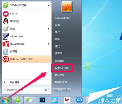 1、電腦驅動同樣會導致復印機顯示紙張尺寸不匹配,我們點擊電腦的開始菜單,選擇設備和打印機。