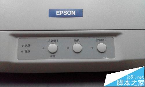 6、去掉薄膜,看到打印機真容。按鍵圓形,可愛勁兒十足。有功能鍵1、功能鍵2、退紙鍵、脫機鍵,五個指示燈。