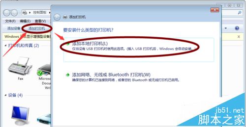 2、點擊進入“設備和打印機”控制選項面板-點擊“添加打印機”Windows系統會自動掃描出你剛才安裝的驅動.