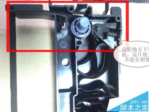 1、取下色帶架,平放在桌子上,如圖,取掉很簡單,不用再圖解了,去掉色帶架周圍四邊的卡扣,蓋子就打開了。如圖,我把用過的色帶扔了,你們也扔掉,呵呵