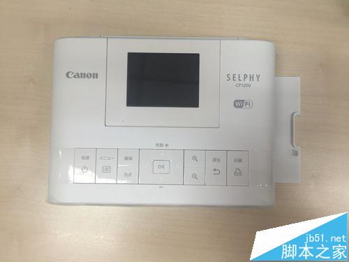 4、SELPHY CP1200機身的外觀,上面有幾個功能鍵左邊第一個是電源按鈕然后是設置選項、編輯和WiFi、上下左右按鈕和確定、放大縮小按鈕、返回按鈕、打印按鈕。