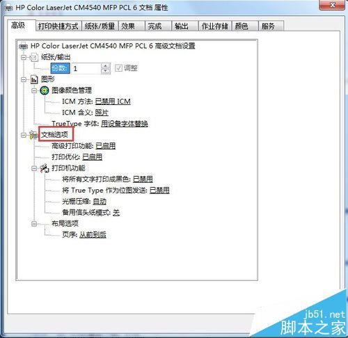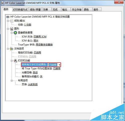 HP Color LaserJet CM4540 如何將彩色文本打印成黑色