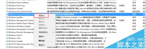 2、然后找到Windows Image Acquisition (WIA)服務(wù)(為掃描儀和照相機(jī)提供圖像采集服務(wù)),如果各位看這個(gè)服務(wù)是“已啟動”那就不用往下看了,再去找找其他的解決辦法吧。