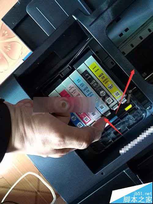 9、要將墨盒從墨倉中取出,可向往用力拉動墨盒卡扣,然后輕輕抬起墨盒,重復(fù)此步操作,就可以把六色的墨盒都取出來了.