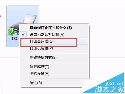 5、設置打印機首選項中的標簽尺寸:開始-設備和打印機:在打印機上右擊 選擇“打印機首選項”