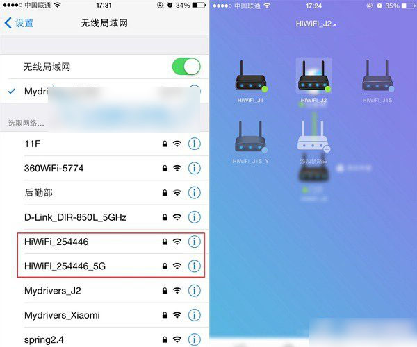 值得一提的是,極路由3包含2.4G/5G Wi-Fi可獨立設置,因此在無線網絡中,會找到兩個無線信號,如下圖所示。