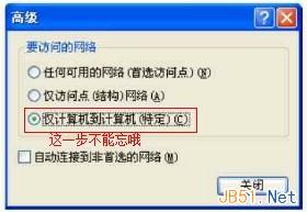 點一下,選擇高級,選擇“僅計算機到計算機(特定),然后點關閉