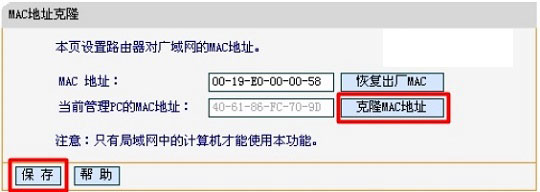 點擊“網絡參數”——>“MAC地址克隆”——>“克隆MAC地址”——>“保存”