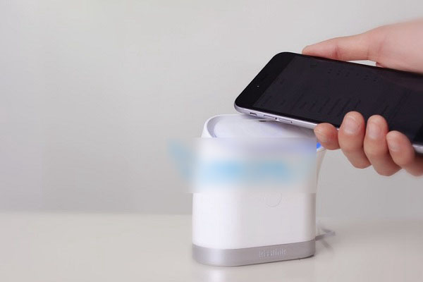 二.此時將智能手機輕輕觸碰吻一下kisslink路由器,如下圖所示。
