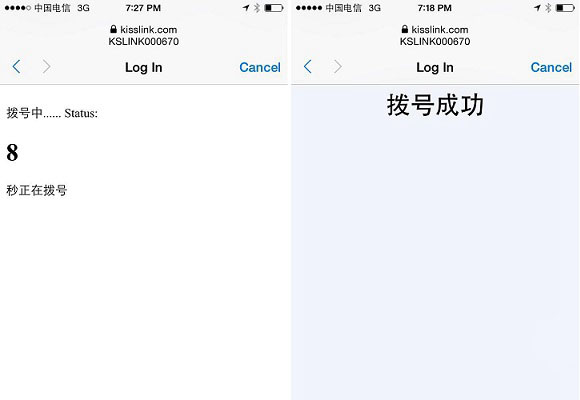 四.當手機顯示撥號成功,說明kisslink吻路由安裝設(shè)置完成了,即刻開始暢快無線上網(wǎng)體驗了!