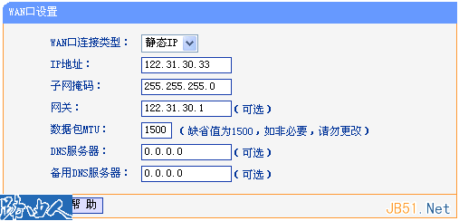 一般上網方式分動態IP地址和靜態IP地址,如果您向網絡服務商(電信或網通)申請的寬帶是固定IP地址,并且網絡服務商提供您所有的外網的IP地址信息:包含IP地址(IP Address)、子網掩碼(Subnet Mask)、網關(Gateway)、以及DNS服務器地址,也就是上網方式是靜態IP。那么您按照如下方式設置您的路由器:
