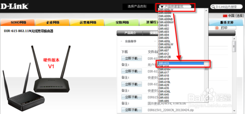 2、在路由器的管理界面中有固件升級的鏈接,但點進去后發現是臺灣的界面,而且搜索615居然沒有硬件版本為J的設備。大概硬件版本為J的只在中國大陸發行吧~所以我直接去了D-Link國內官網。(具體百度之...)