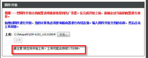 5、下載完成后,進入路由器管理界面,在“維護”-“固件升級”中可以找到升級入口。點擊“瀏覽”找到剛才下載的固件文件,它會自動轉換成一個虛擬地址,C盤的,不用管它~,然后點擊“上傳”開始升級。