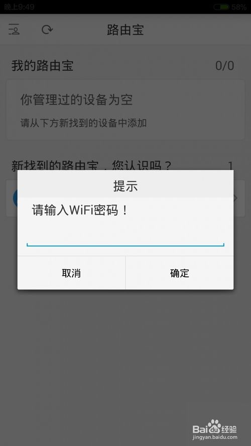 3、下面是手機(jī)端的設(shè)置,下載“路由寶APP”然后打開進(jìn)入輸入密碼進(jìn)入后,你會(huì)看到有個(gè)新的設(shè)備,點(diǎn)擊它后輸入WIFI密碼進(jìn)行加入設(shè)備。
