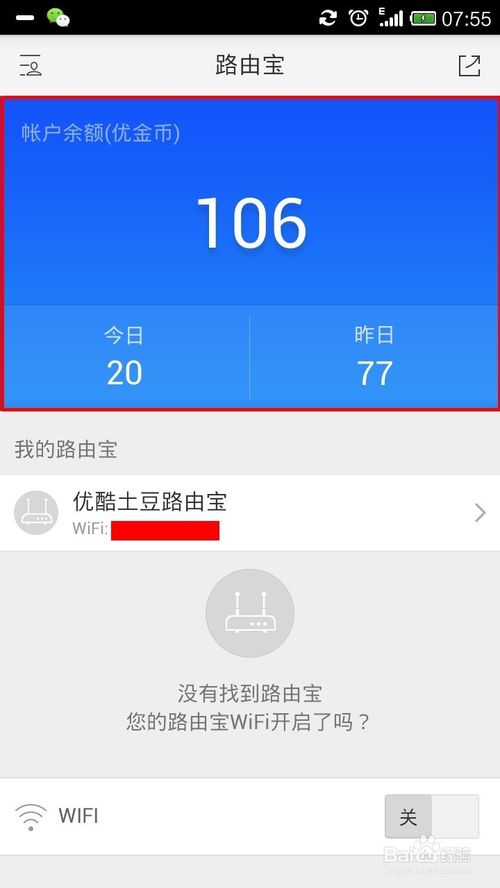 “會(huì)賺錢”路由寶,是優(yōu)酷土豆推出的一款路由器,那么我來介紹一下如何設(shè)置路由器及綁定查看你今天賺了多少金幣 。當(dāng)然賺金幣的前提路由寶要聯(lián)網(wǎng)。