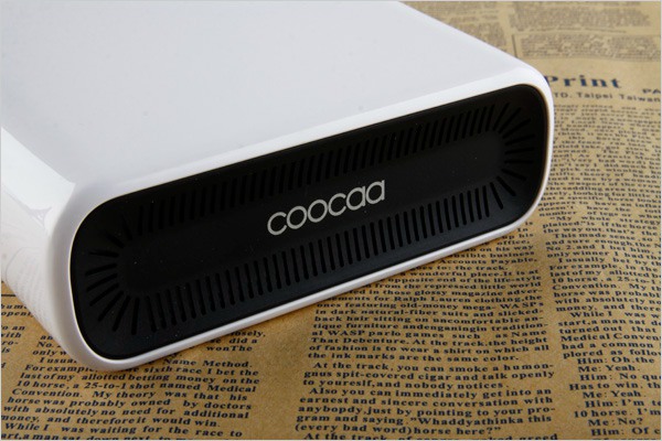 酷開路由機(jī)身頂蓋有一圈陣列式散熱孔,配合底蓋上的散熱孔可以實現(xiàn)很好的空氣對流,提高散熱效果。同時黑底銀字的“coocaa”Logo顯得十分惹眼。