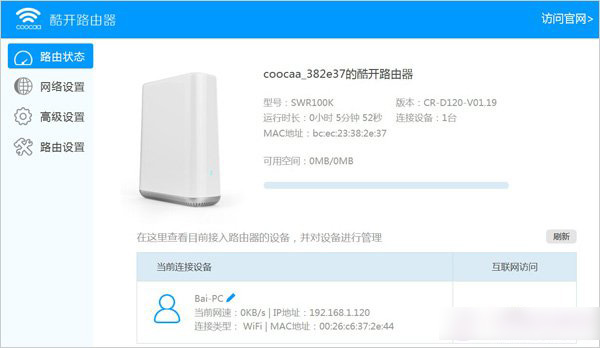 酷開路由的系統(tǒng)基于OpenWRT深度定制,不僅穩(wěn)定性好,而且支持功能擴(kuò)展。設(shè)置頁面采用了圖形化設(shè)置,可查看當(dāng)前路由器的工作狀態(tài)、存儲容量以及當(dāng)前設(shè)備的連接情況,而且僅有四個大選項卡,不僅簡潔而且降低了設(shè)置的難度。