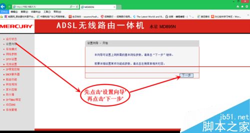 3、進入網(wǎng)絡設置頁面,點擊‘設置向導’后,直接點擊‘下一步’。