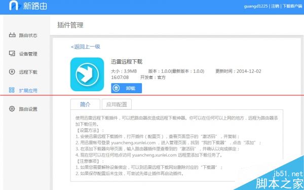 迅雷離線下載,通過設(shè)備提供的激活碼,可以將讓路由綁定在迅雷賬號(hào)。在迅雷遠(yuǎn)程下載的網(wǎng)頁端可以直接執(zhí)行文件和BT下載任務(wù)。平時(shí)甚至可以用手機(jī)控制路由器自行完成電影下載,回家后用DLNA或在網(wǎng)絡(luò)鄰居中直接打開視頻,可用性相當(dāng)高。