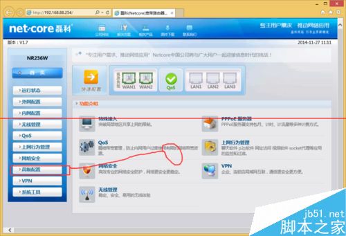 端口映射功能是每一個路由器都必須要有的功能,不然外面的電腦是沒有辦法訪問在路由器內部的電腦的,端口映射功能就是把內部的IP映射到路由器的外網IP上,下面小編要用NR236W路由器來演示一下怎么樣添加端口映射.