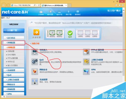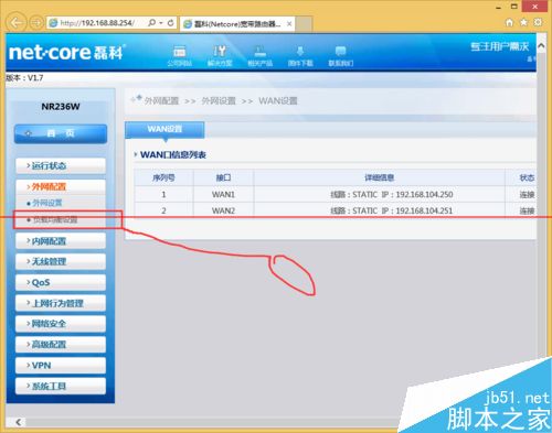 在市面上有一些路由器是支持多Wan的;也就是我們常說的帶寬疊加,帶寬疊加之后的效果就是多條線路同時使用;帶寬的速度疊加起來;2條4M的帶寬疊加之后能夠達到8M左右,下面就以磊科-NR236W路由器來演示怎么樣做帶寬疊加