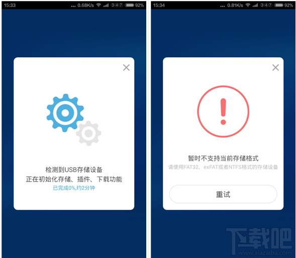 2.插入USB存儲設備后,它還有一個檢測環節,這個過程需要2.3分鐘。它并不是所以格式都支持的,目前只支持FAT32、exFAT和NTFS格式的存儲格式。不過有時它也會識別錯誤。我插入后,有幾次都識別錯誤,重新插過才可以。