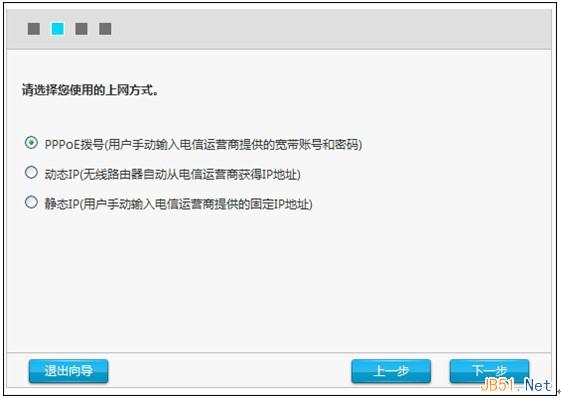 進入向導頁面后點擊“下一步”就進入了上網方式選擇的頁面。