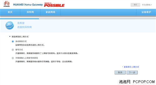 華為WS550路由器在設置方面參考了更簡單的設置界面,對于普通用戶來說在接通各類線材后,只要跟著設置向導就能完成對路由器的設置。