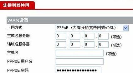 WAN口設置選項:WAN口設置主要是配置用戶的上網方式。用戶將自己所用的網絡接入模式及相關信息填寫進去即可。以PPPoE虛擬撥號為例,向用戶介紹一下如何配置WAN口。