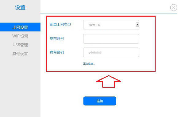 五、登陸聯想智能云路由后,接下來就可以將上網賬號設置進去了,如下圖,這里填寫上網款到賬號:
