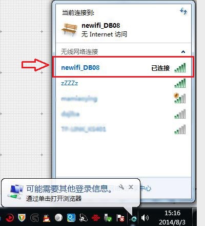 以下筆者演示的是,以筆記本和智能手機完成聯想智能云路由設置。聯想newifi智能云路由接通電源后,會自動創建一個名為newifi_***的Wifi網絡,筆記本直接無線連接即可,如下圖所示: