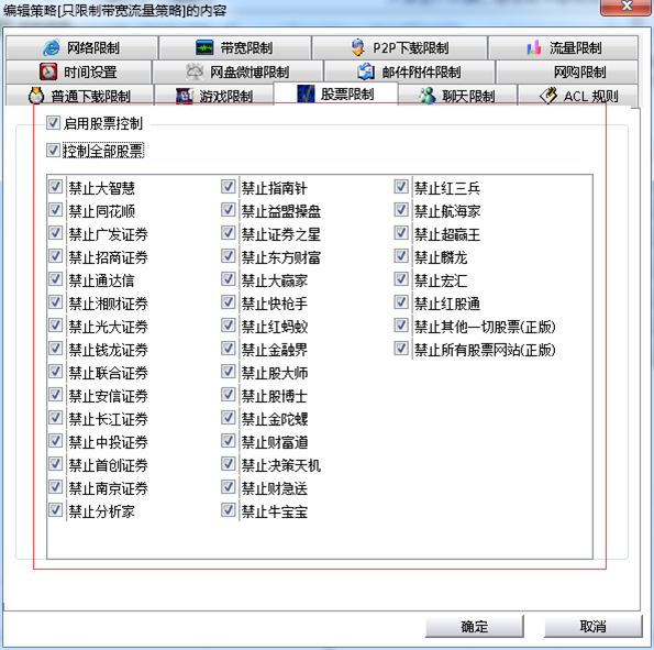 此外,通過(guò)聚生網(wǎng)管系統(tǒng),還可以禁止局域網(wǎng)玩游戲、禁止局域網(wǎng)炒股等,防止員工上班時(shí)間開(kāi)小差的行為,規(guī)范員工文明上網(wǎng),提高網(wǎng)絡(luò)資源的利用效率,提升員工工作效率。如下圖所示: