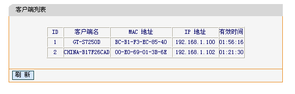 我這可看出有兩個設備在使用該網絡1:我手機三星S7250D,2:臺式機名為B17F26CAD