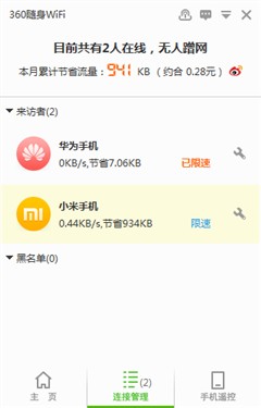 可以針對單一設備進行網速的限速管理,這樣設計即便是有多臺同時接入Wi-Fi的情況下,也依然可以設置優先使用網絡的設備不被過多的干擾。PS:即便不情愿的被別人蹭網,也可以通過這種方式讓他心甘情愿的去尋找其他的熱點進行連接了。