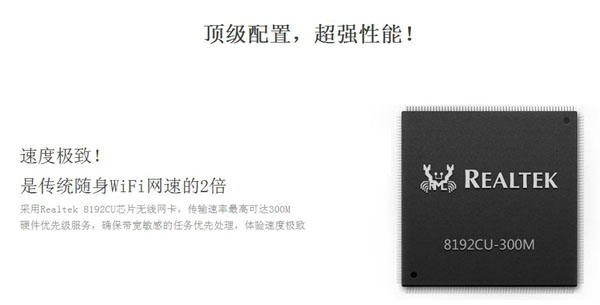 獵豹極速WiFi紀念版是一款300M頂配無線網(wǎng)卡,它采用Realtek 8192CU芯片無線網(wǎng)卡,傳輸速率最高可達300M,比隨身WiFi網(wǎng)速快一倍。