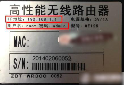 第二步:查看無線路由器背面貼標,上門標識有無線路由器的IP地址、默認用戶名和密碼等信息。