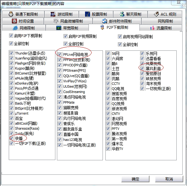 圖:禁止P2P軟件下載、屏蔽視頻網站、禁止網絡電視播放軟件