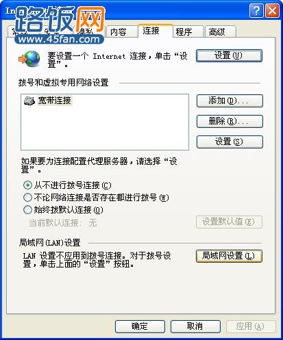2、點擊“連接”選項---“局域網(LAN)設置”,如下圖所示:
