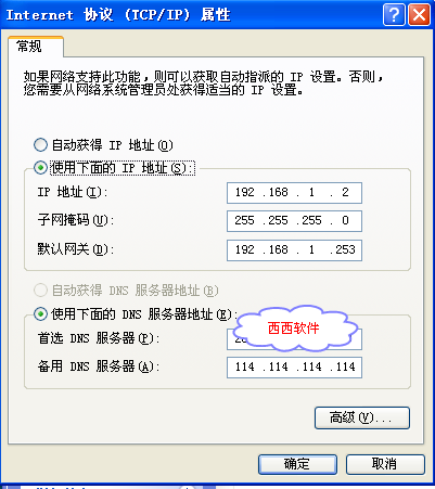 6、插上網(wǎng)線,設(shè)置網(wǎng)卡的網(wǎng)關(guān),DNS,IP(主wifi的)