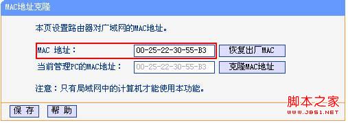 3、若線路運營商限制使用路由器的話,可以通過克隆運營商綁定的mac地址來進行上網。如下圖示。
