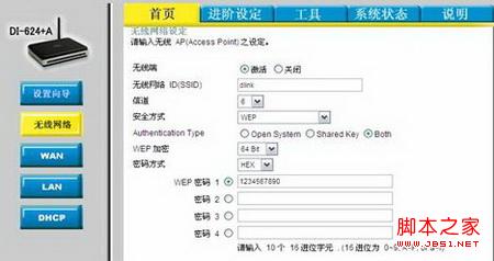 3.檢查無線是否有做加密,建議將加密方式設置成WEP。(在“首頁”→“無線網絡”→“安全方式”,選擇WEP)
