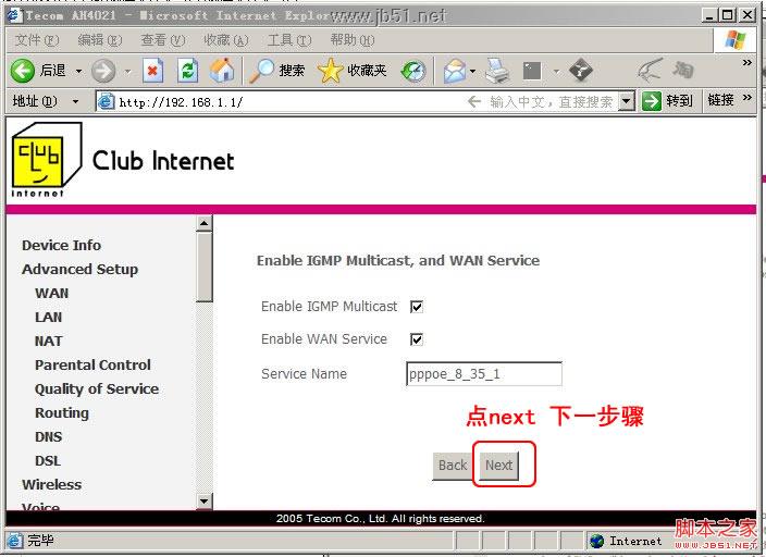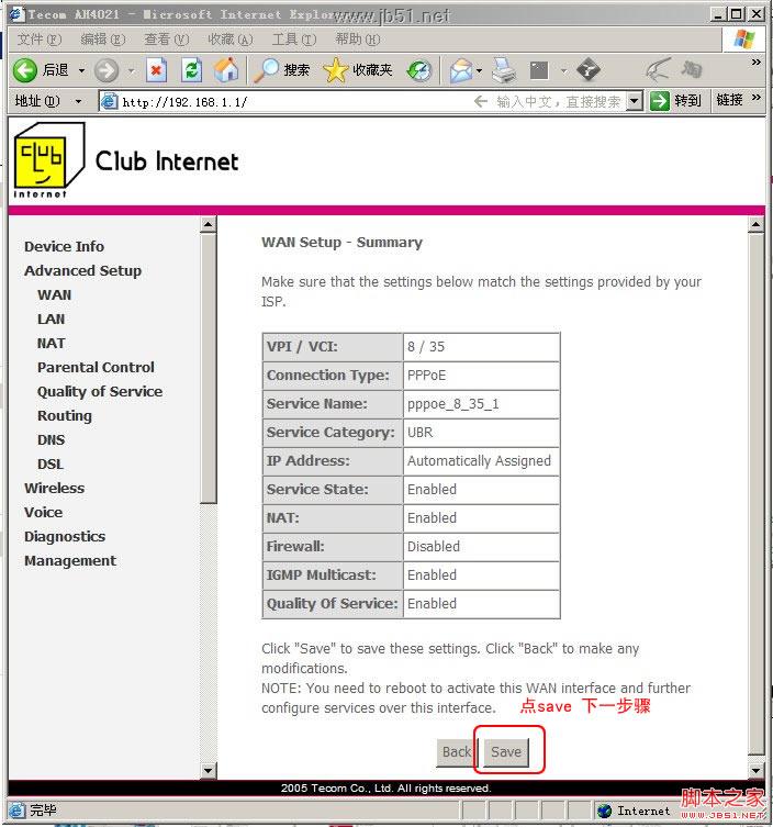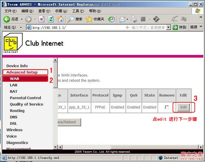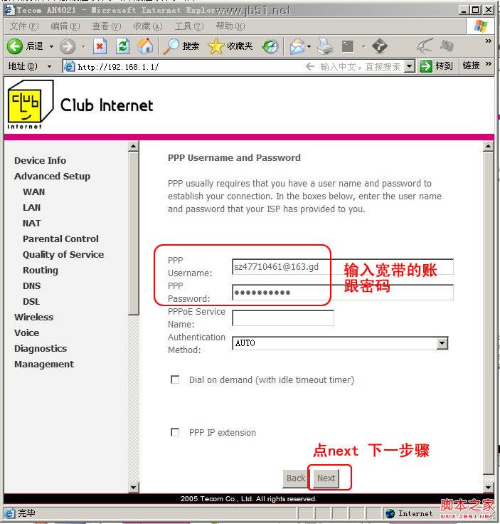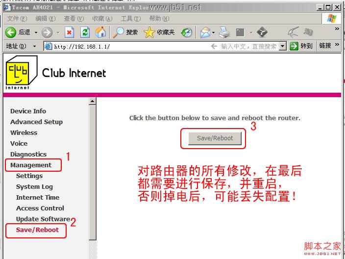 2. 在IE地址欄輸入192.168.1.1 輸入用戶名:root 密碼clubadmin 注意大小寫