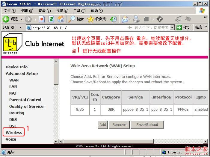 9. 出現以下窗口后, 咱先不重啟路由器, 如下圖, 點左邊選項wireless , 配置無線選項.