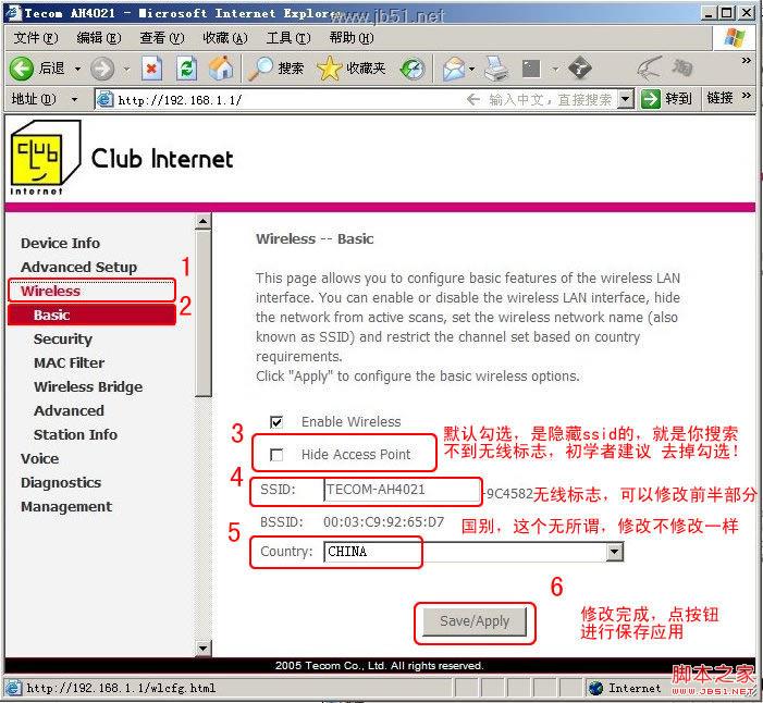 10. 在這個頁面, 修改SSID 注意:本款路由器, 默認是隱藏無線的, 需要在第3處, 勾選項Hide Access Point 來開啟無線廣播.