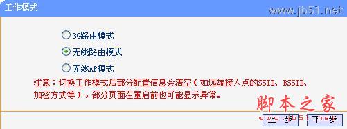 步驟2:點擊“下一步”開始設置,彈出無線工作模式設置頁面,如下圖所示。