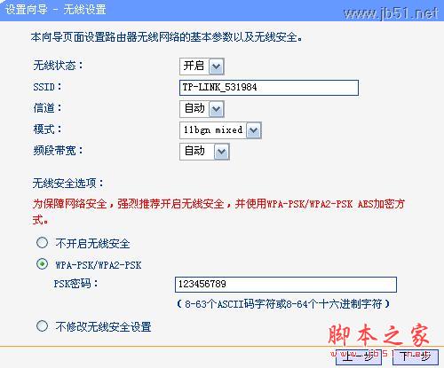 模式:該項用于選擇路由器的工作模式,可供選擇的有11M帶寬的802.11b模式、54M帶寬的802.11g模式、300M的802.11n模式、802.11b/ g混合模式和802.11b/ g/n混合模式。