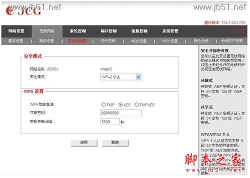其次,無線網絡—安全與加密(記住該路由器的:安全模式、加密算法、共享密鑰(密碼))如下圖: