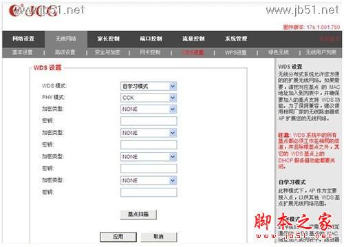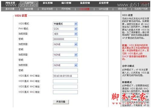 再次,無線網絡—WDS設置(記住該路由器的:WDS模式—選擇“自學習模式”),如下圖: